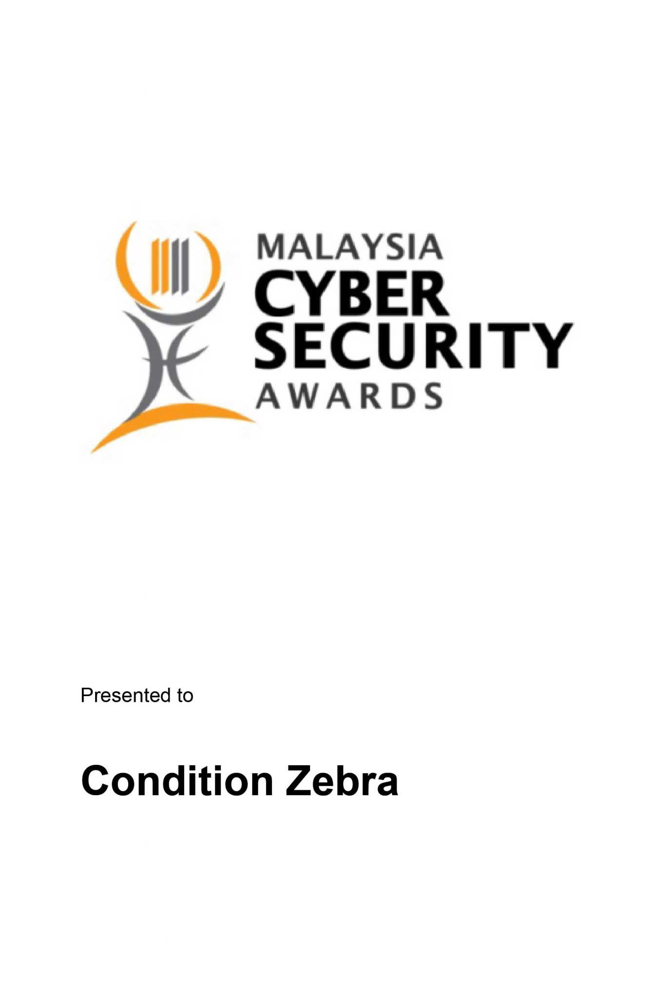 Condition Zebra was awarded as a winner in the category of “Cyber Security Education and Training Provider of the Year” in the Malaysia Cyber Security Award 2015, by CyberSecurity Malaysia.