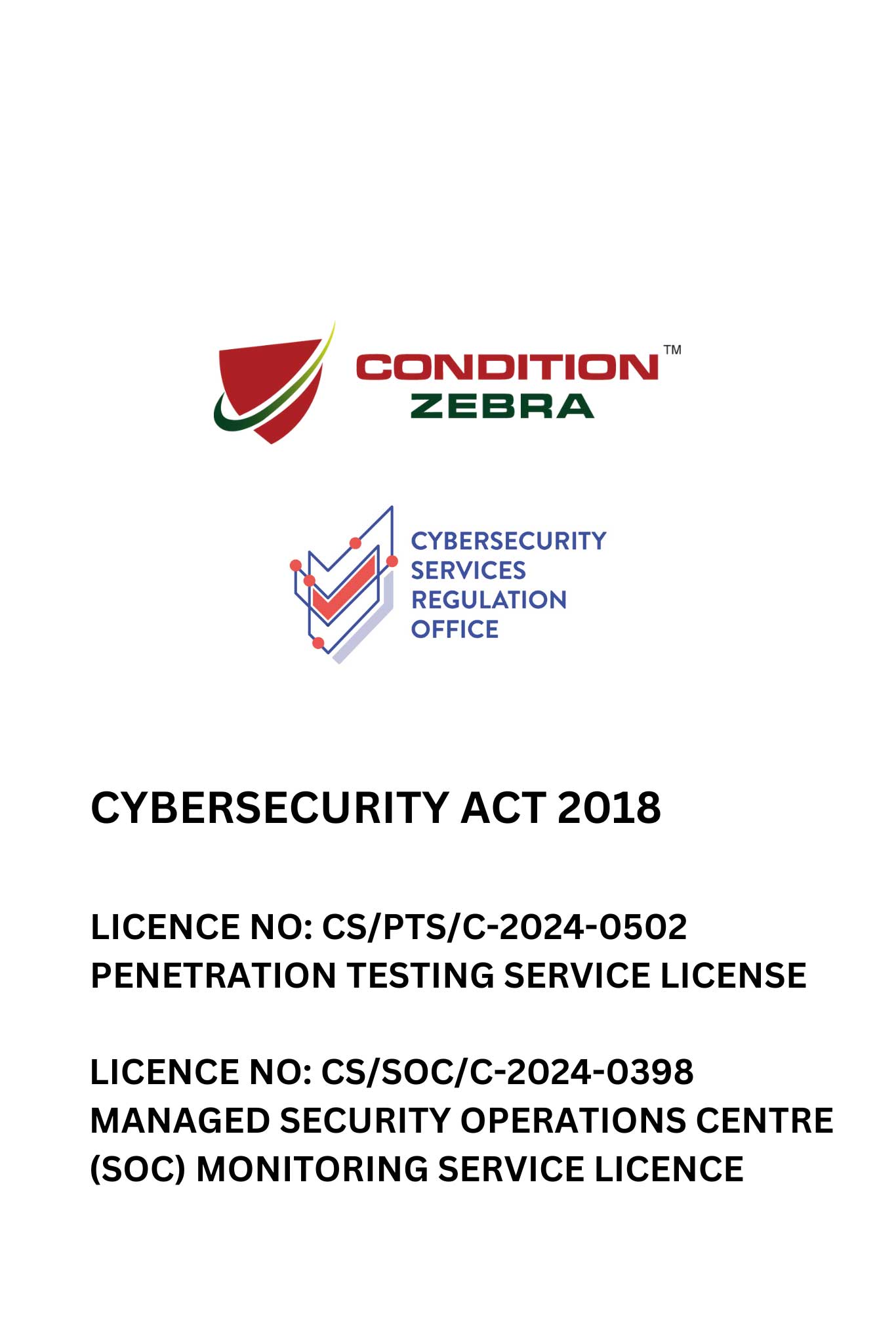 Condition Zebra granted the Licence by CYBERSECURITY SERVICES REGULATION OFFICE (CSRO), Singapore.