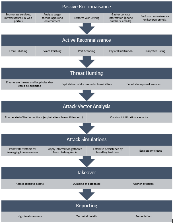 Simulate real-life attacks by putting the infiltration plans into action. Successful infiltration will result in a takeover. The effectiveness of the target’s security measures and personnel will be assessed in this stage.